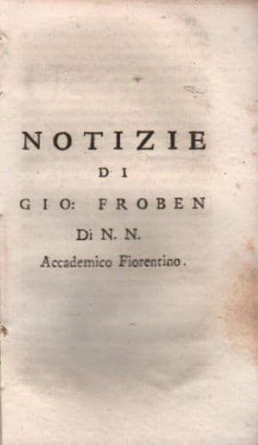Notizie Di Gio: Froben. Venezia, Metà XVIII Secolo. Raro Saggio Bibliografico