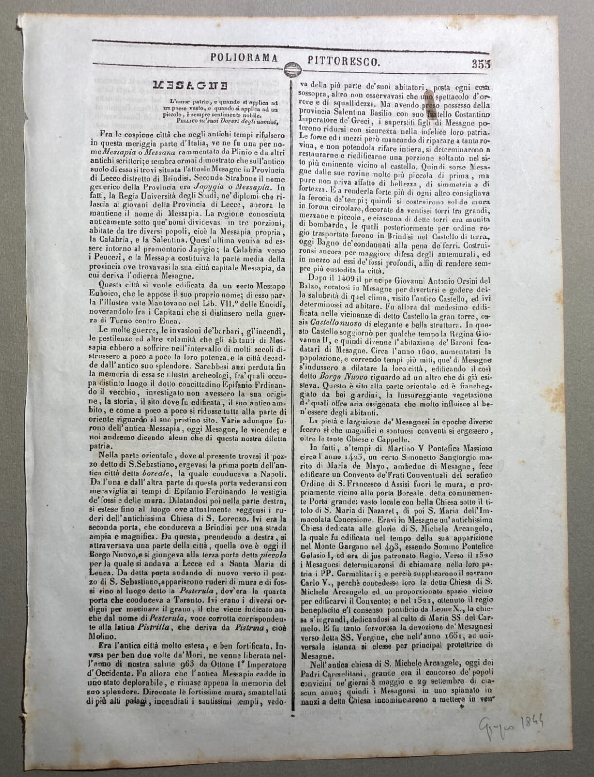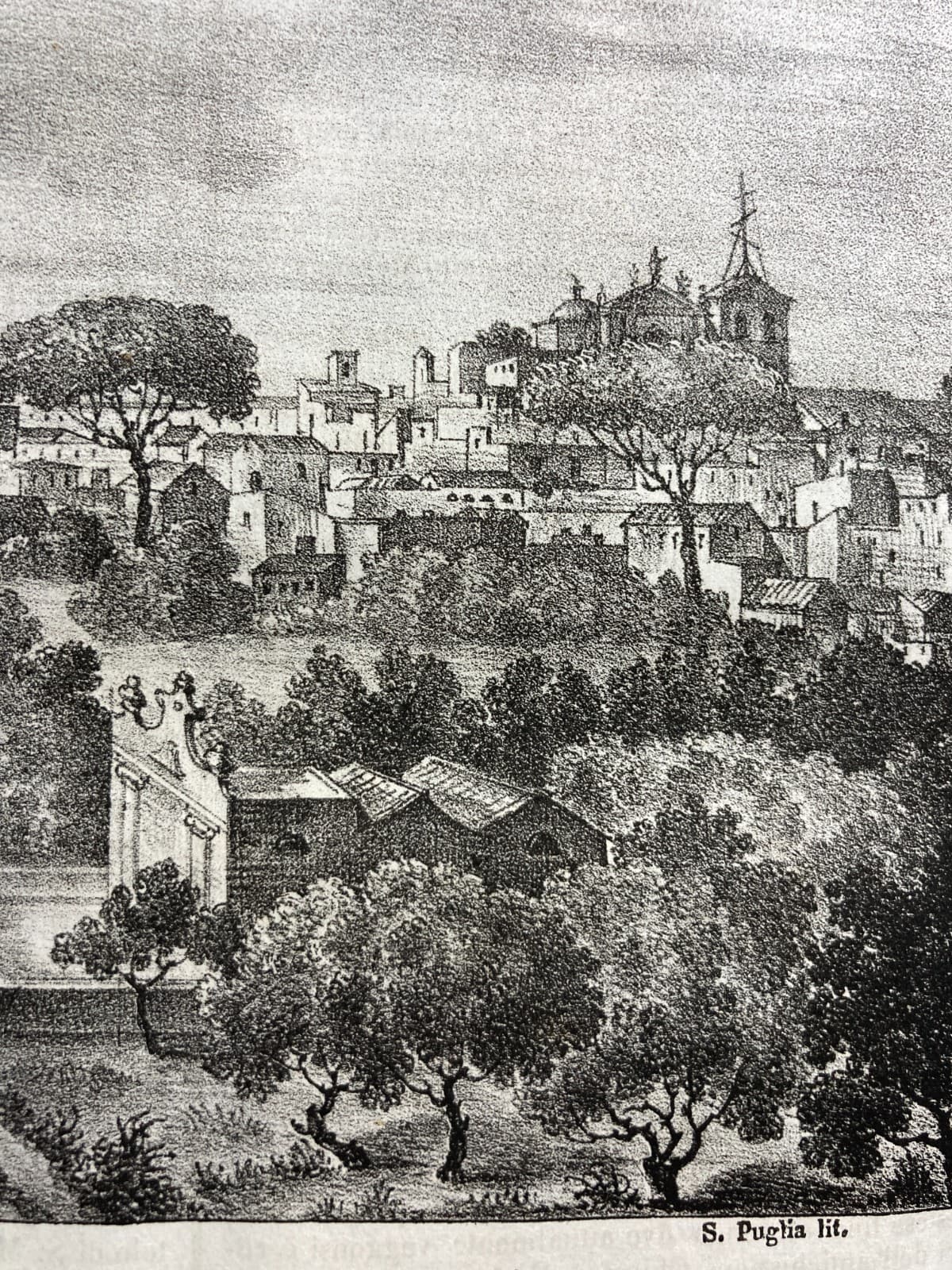 Puglia, Salento, Brindisi: Veduta Orientale Di Mesagne. Litografia Originale Dell'Ottocento