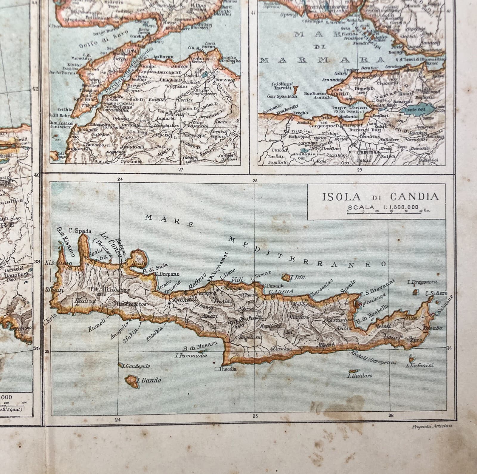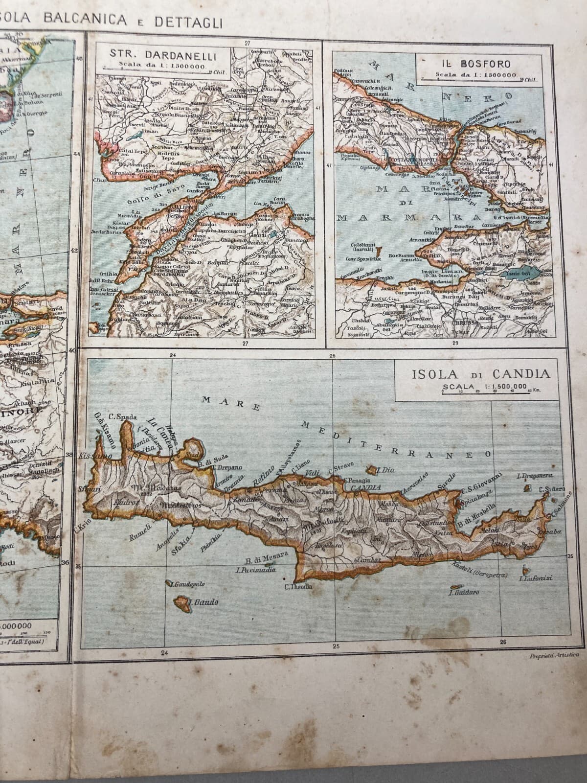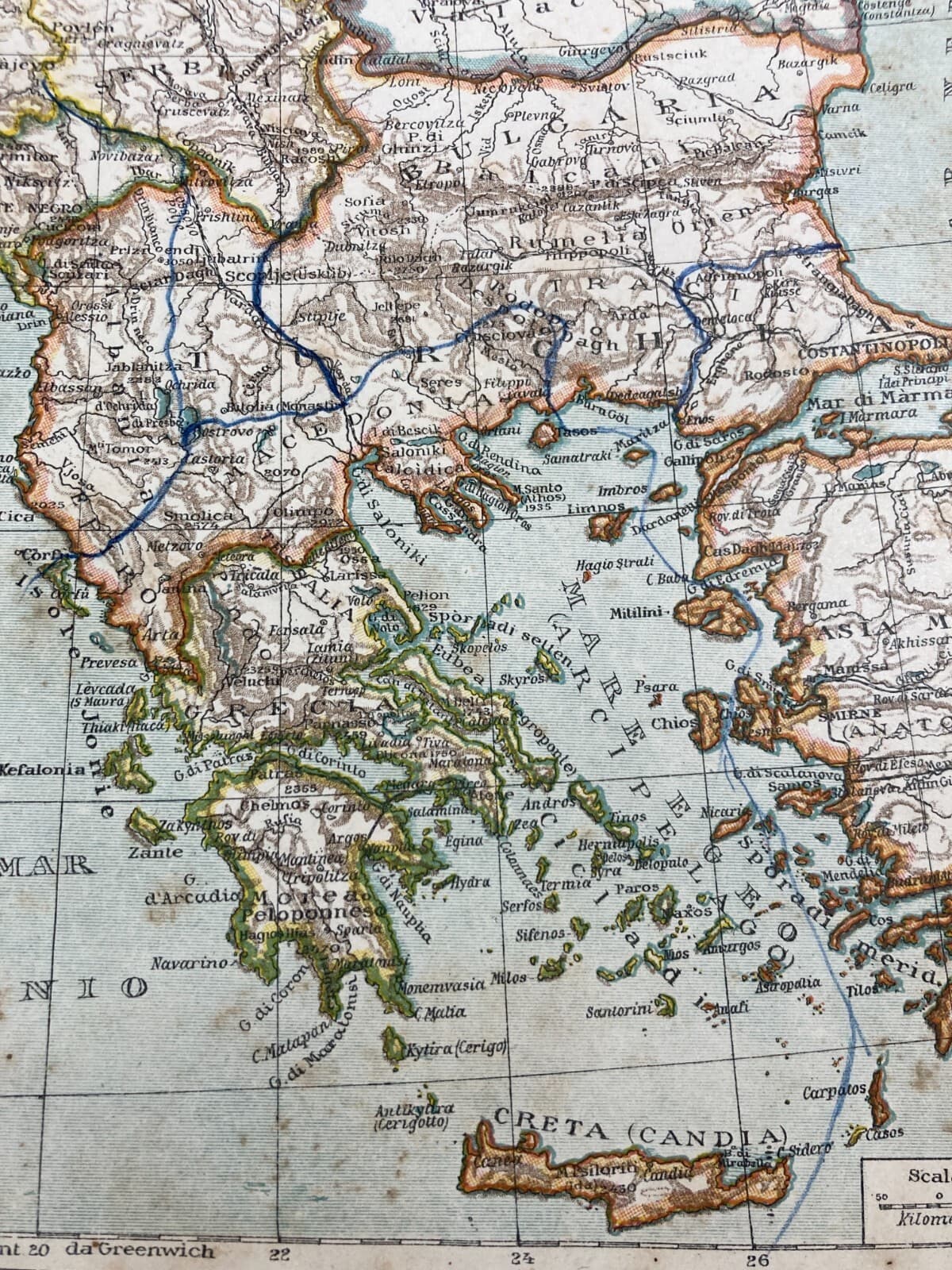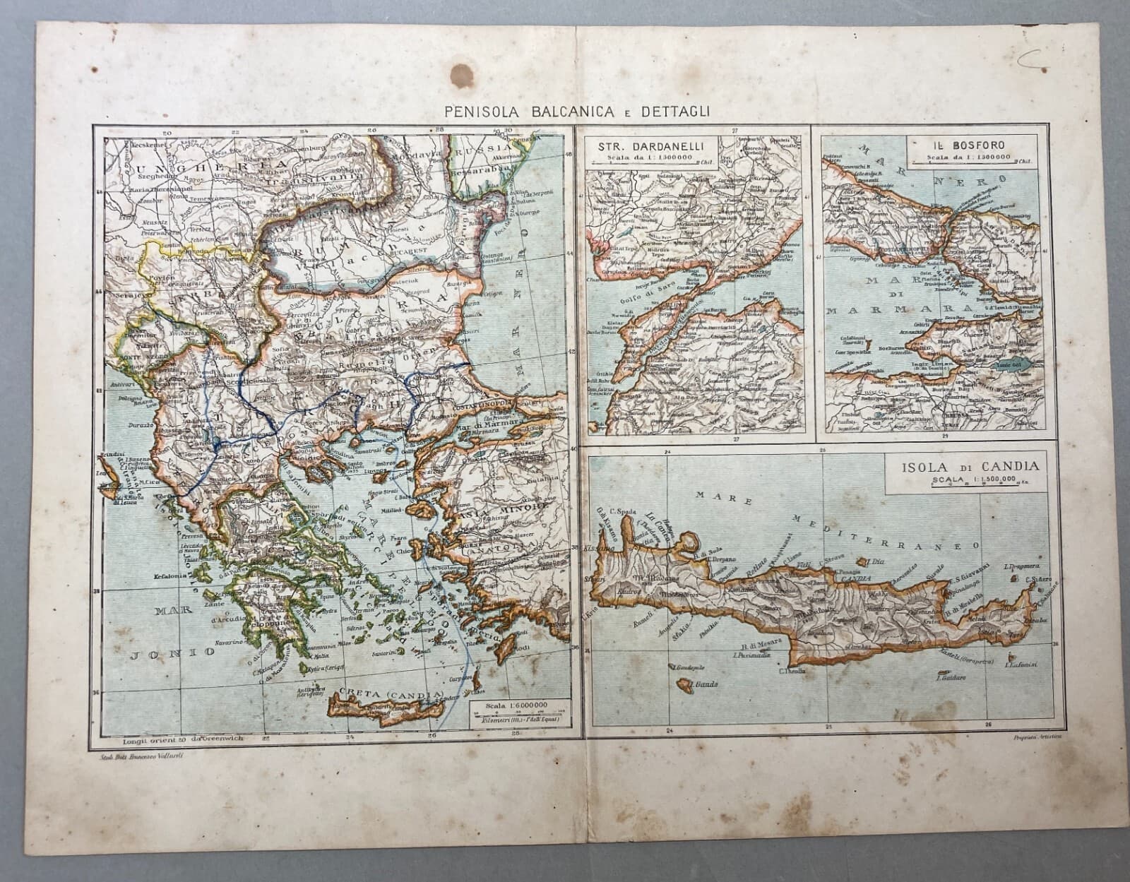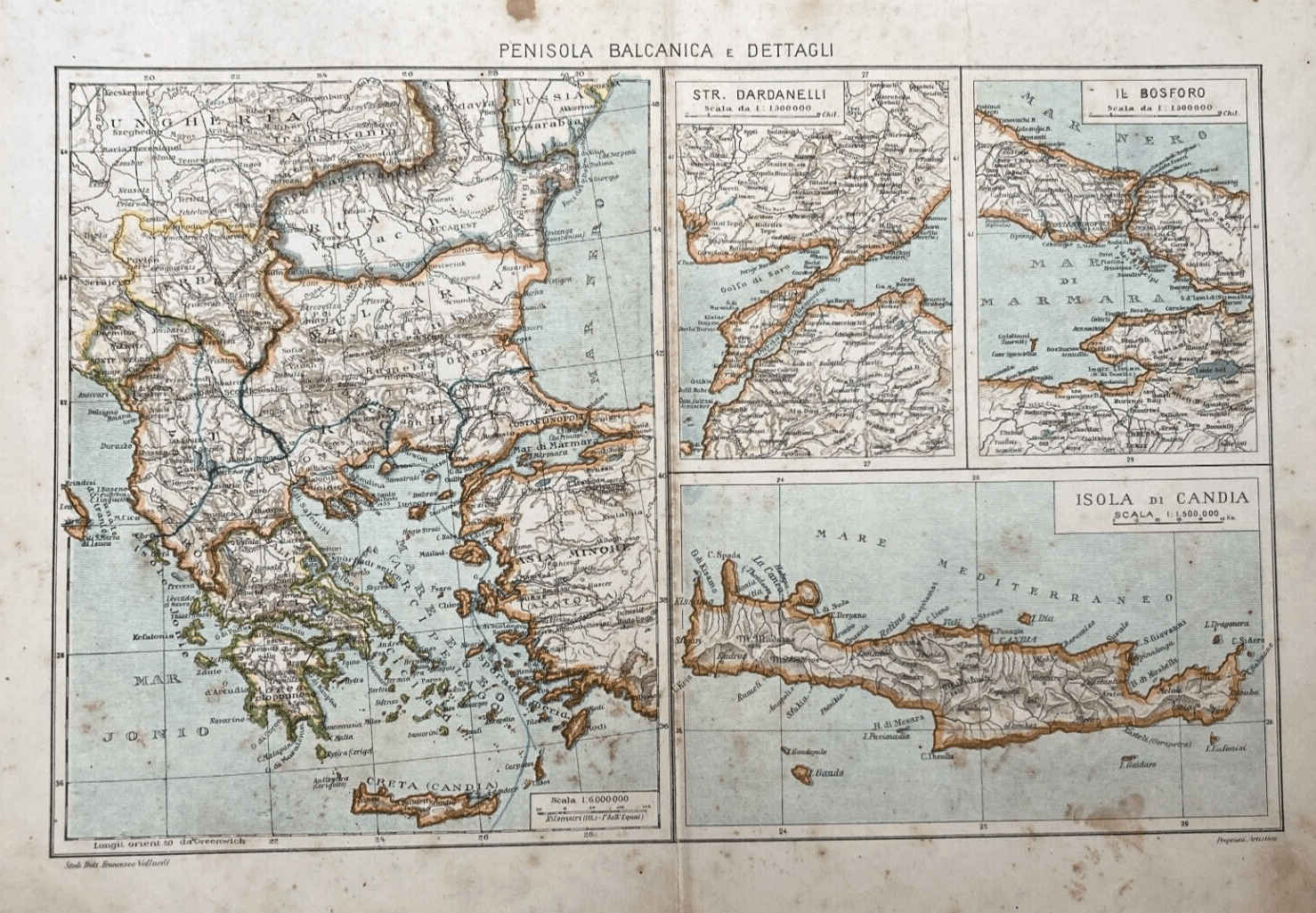 Penisola Balcanica, Grecia, Candia, Bosforo, Dardanelli, Salento. Antica Cartografia
