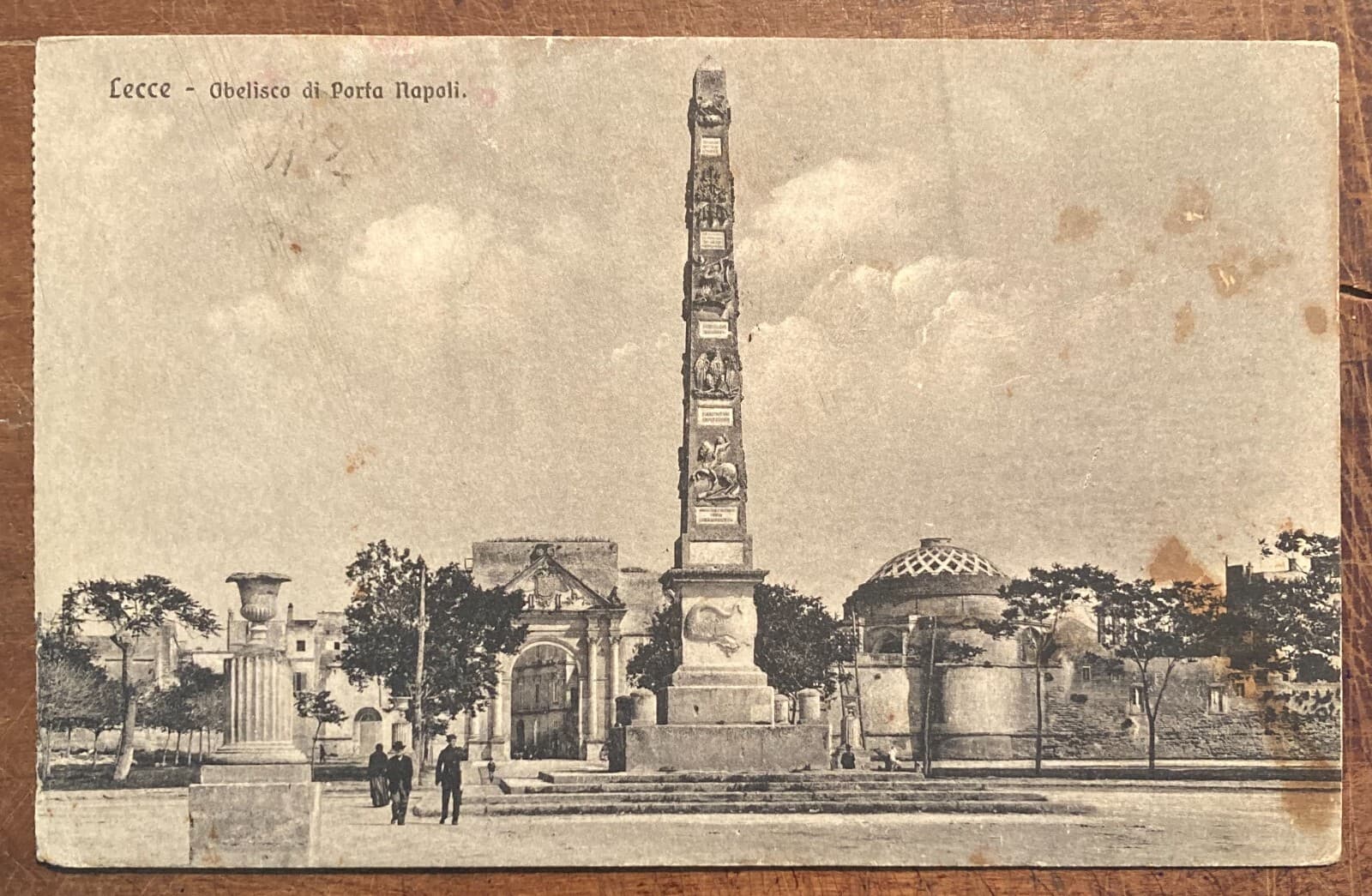 Puglia, Salento, Lecce, Antica Veduta Dell'Obelisco Di Porta Napoli, Animata, Viaggiata