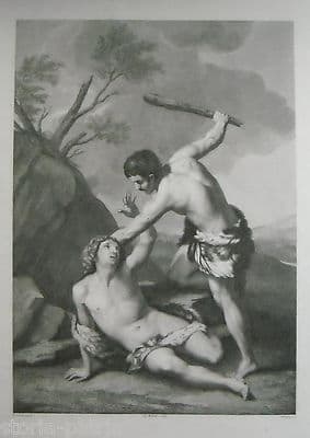 Scena Biblica (Caino E Abele), Incisione Di A. Lauro (da E. Sirani), Basadonna, Torino, Metà XIX Secolo