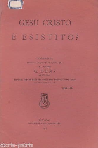 Gesù Cristo È Esistito? Gustavo Benz, 1910, Coenobium, Lugano