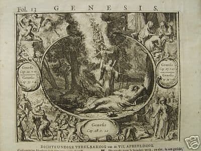 Incisione Originale All'Acquaforte Raffigurante Scene Bibliche Dalla Genesi, 1700