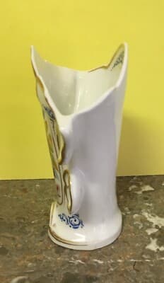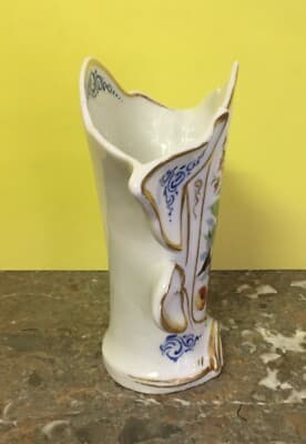 Vaso Portafiori In Porcellana Fiorata E Dorata, Fine XIX Secolo