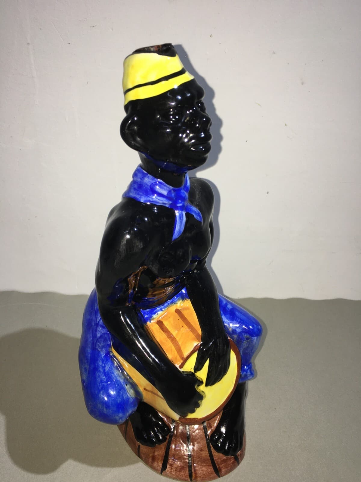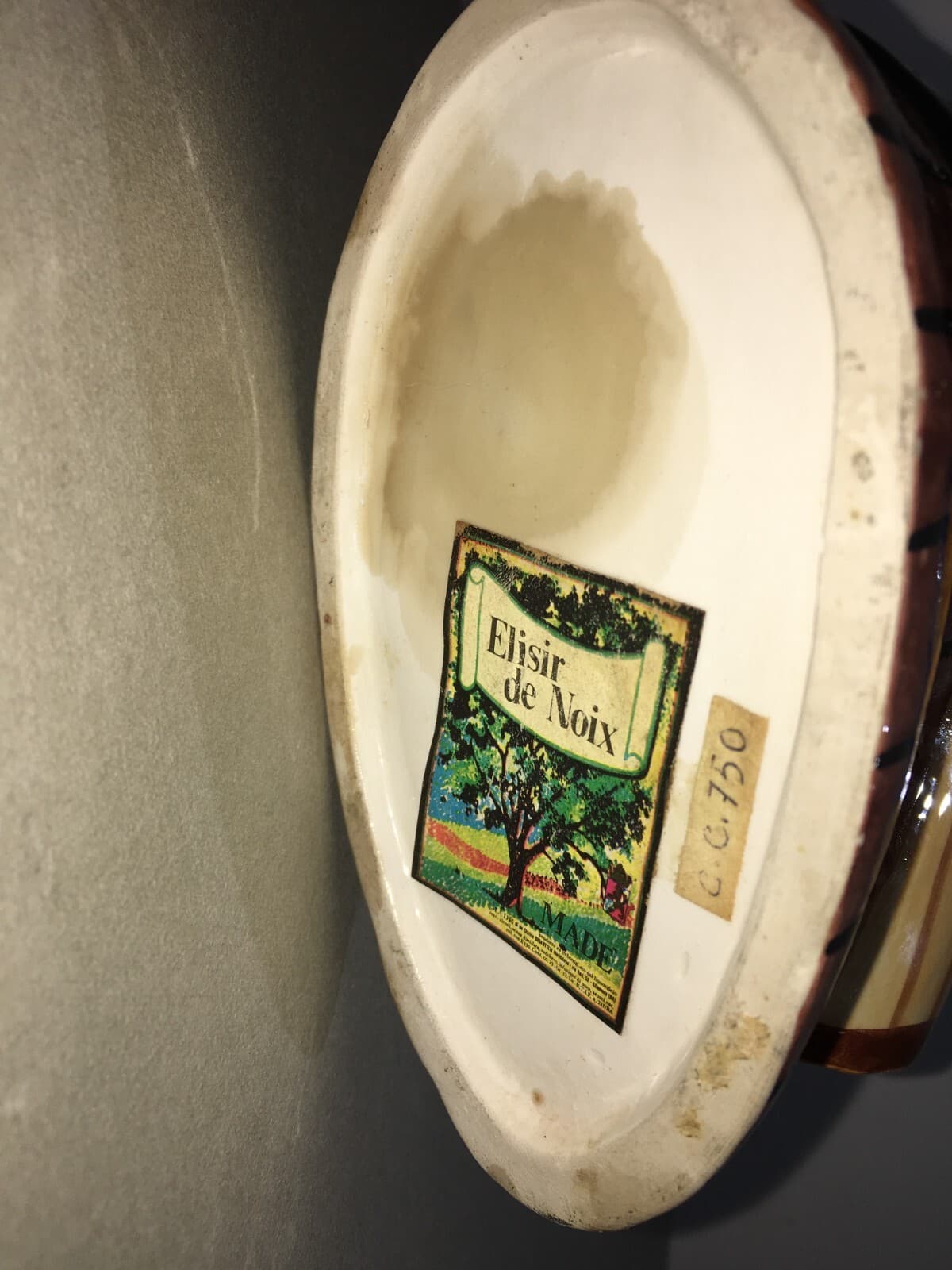 Distilleria Liquori: Bottiglia In Ceramica Con Uomo Di Colore, Elixir De Noix, Metà Del '900