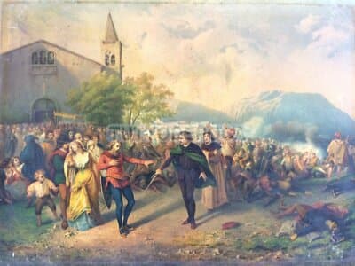 Lombardia, Animata Scenografia Con Processione E Tumulti Popolari, Opera Di Giulio Gorra, Borzino