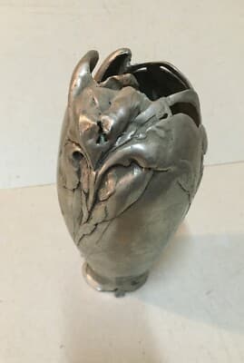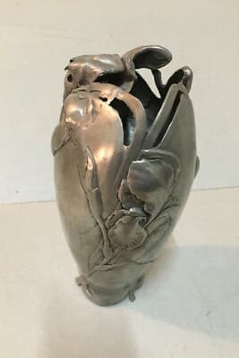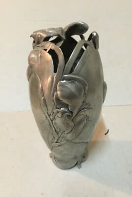 Vaso In Peltro In Stile Liberty Decorato A Rilievo