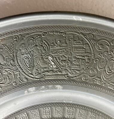 Piatto Decorativo Allegorico In Peltro Berendsohn Temperanza E Arti Liberali
