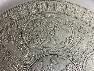 Vassoio Antico Centrotavola In Peltro Massiccio