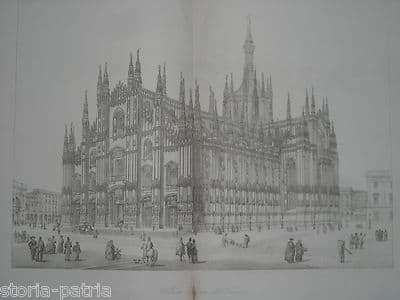 Milano, Duomo: Grande Veduta Prospettica Della Facciata, Incisione Antica