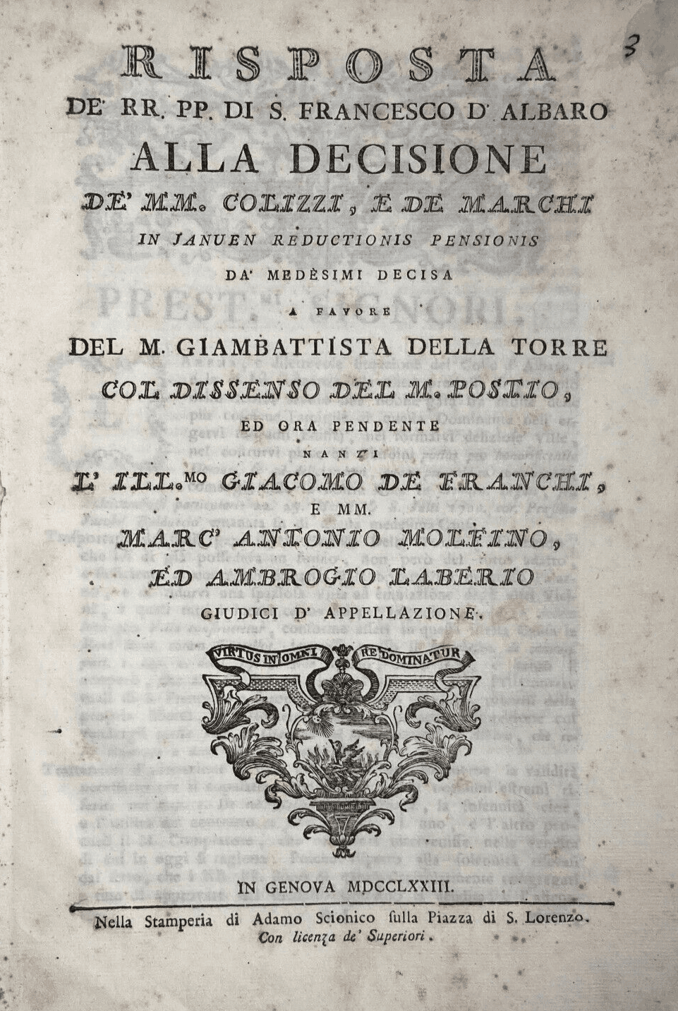 Liguria, Genova: Antica Allegazione Giuridica Pallavicino, Queirolo, Boggiano, Viale