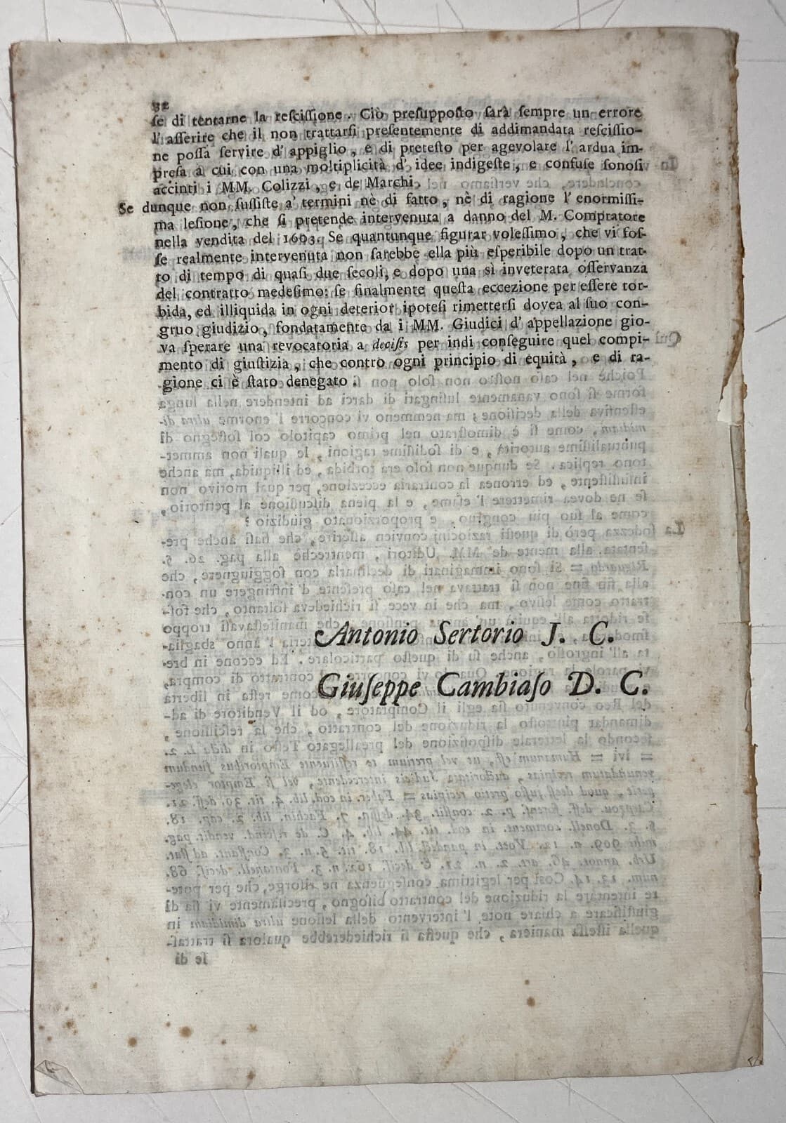 Liguria, Genova: Antica Allegazione Giuridica. Controversia Fabiano, Burlando E Sanguineti
