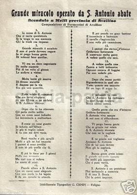 Miracolo Di S. Antonio Abate A Melfi: Foglio Volante Di Formentini (Avellino/Foligno)