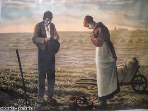 Stampa Antica L'Angelus Di Millet: Contadini In Preghiera, 1900