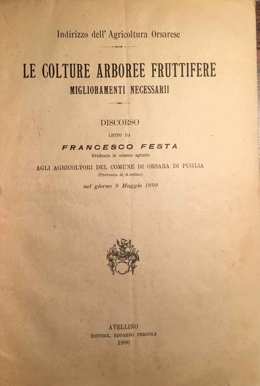 Agraria, Botanica, Frutta E Viticoltura A Orsara Di Puglia: Economia Ed Emigrazione