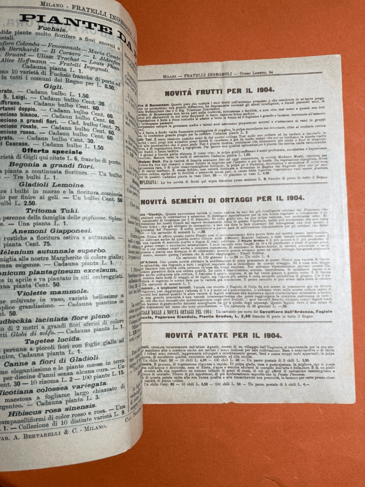 Agraria, Botanica, Ortaggi, Frutta, Fiori, Piante. Antico Catalogo Pubblicitario, 1903