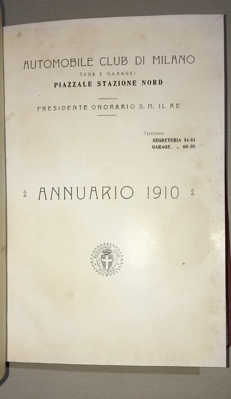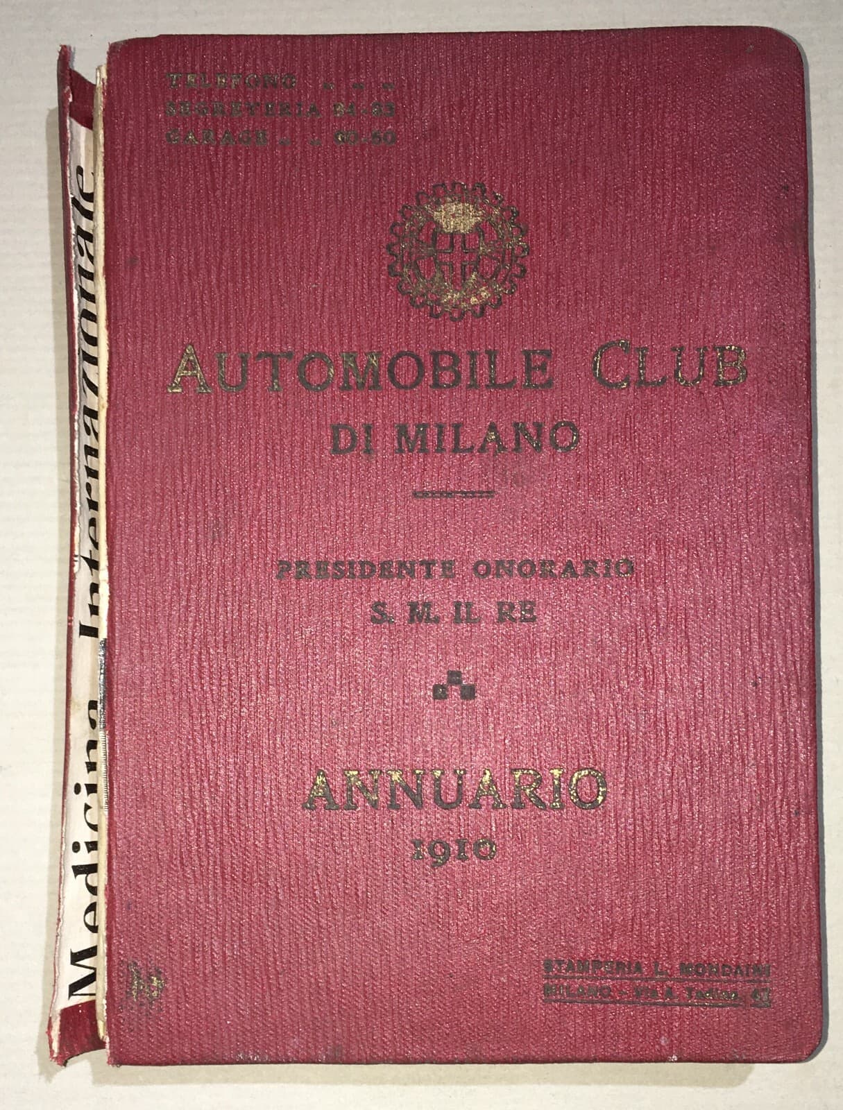 Aci Milano, Automobil Club, Annuario 1910 Con Elenco Soci E Foto Garage