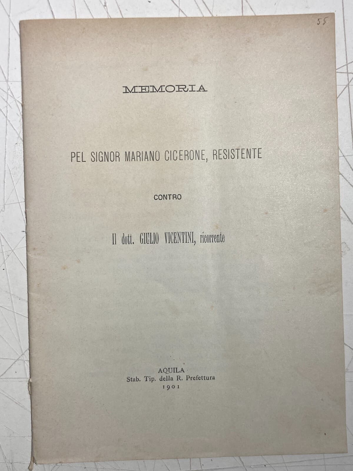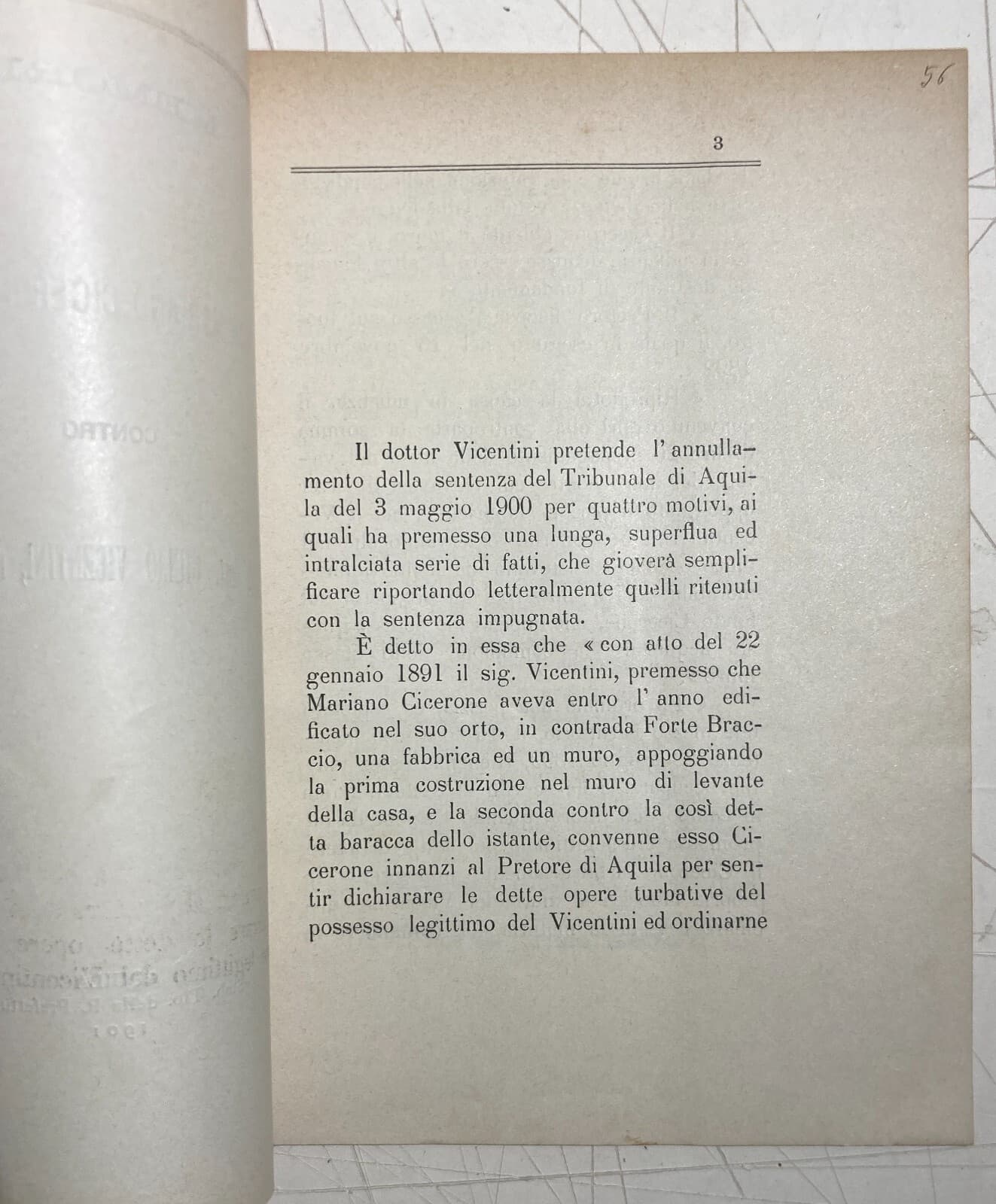 Abruzzo: Controversia Giuridica Cicerone Vicentini, Aquila 1901
