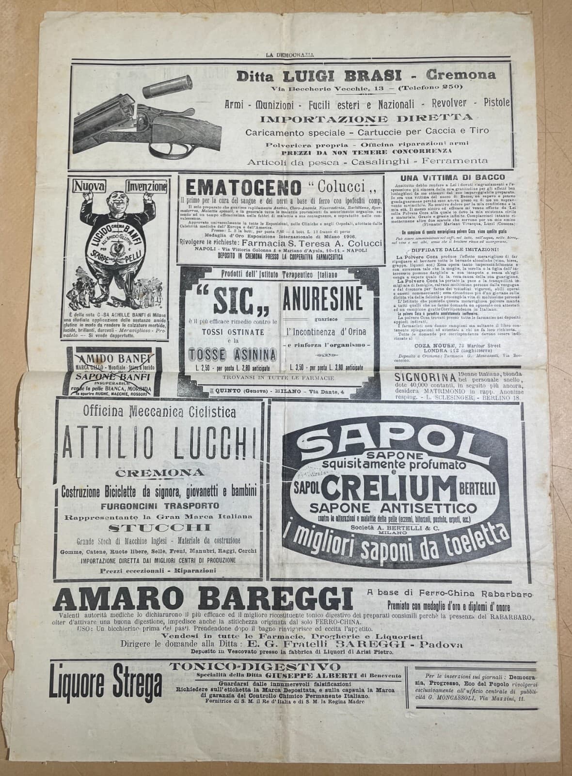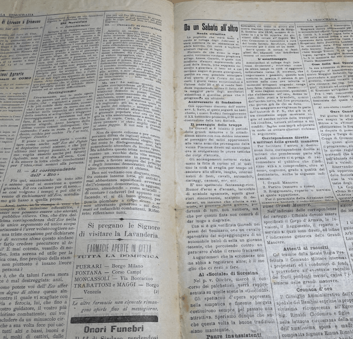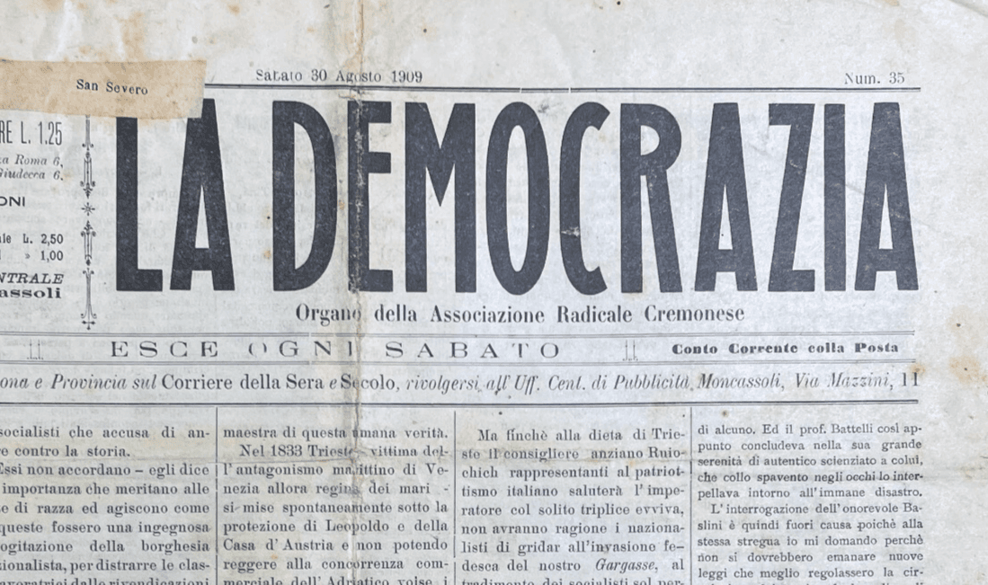 Antico Giornale La Democrazia: Cremona, Associazione Radicale, 1909
