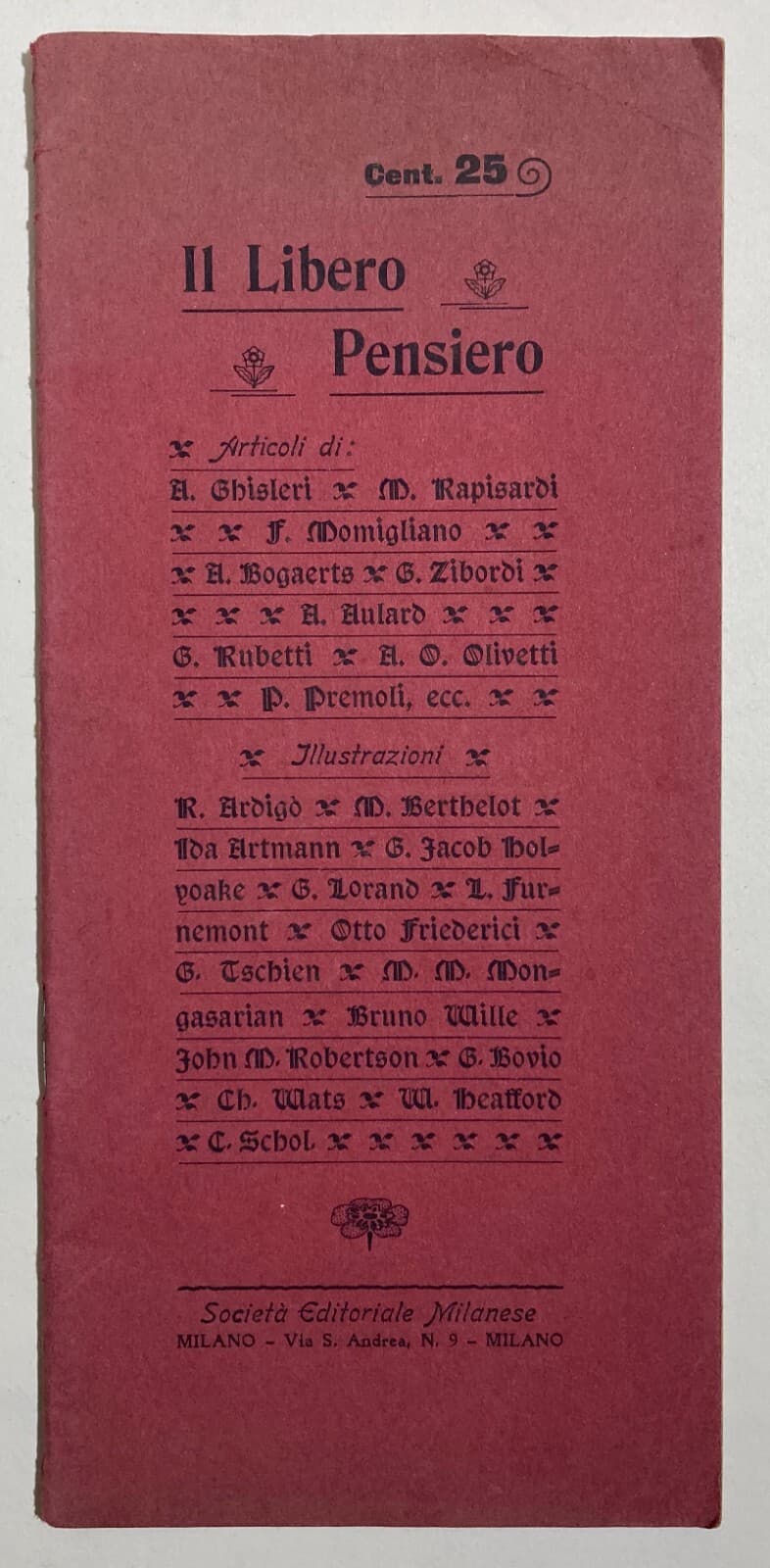 Il Libero Pensiero: Socialismo, Chiesa, Rapisardi, Bovio, Olivetti, Massoneria