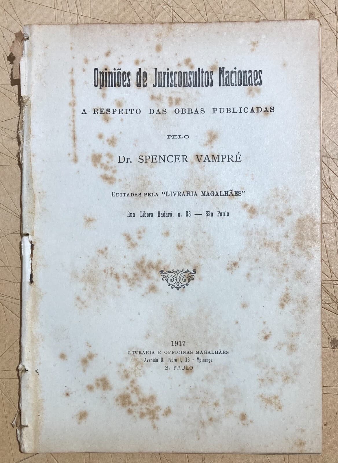 Giuridica Brasile Codice Brasiliano Spencer Vampré Raccolta Di Opinioni 1917