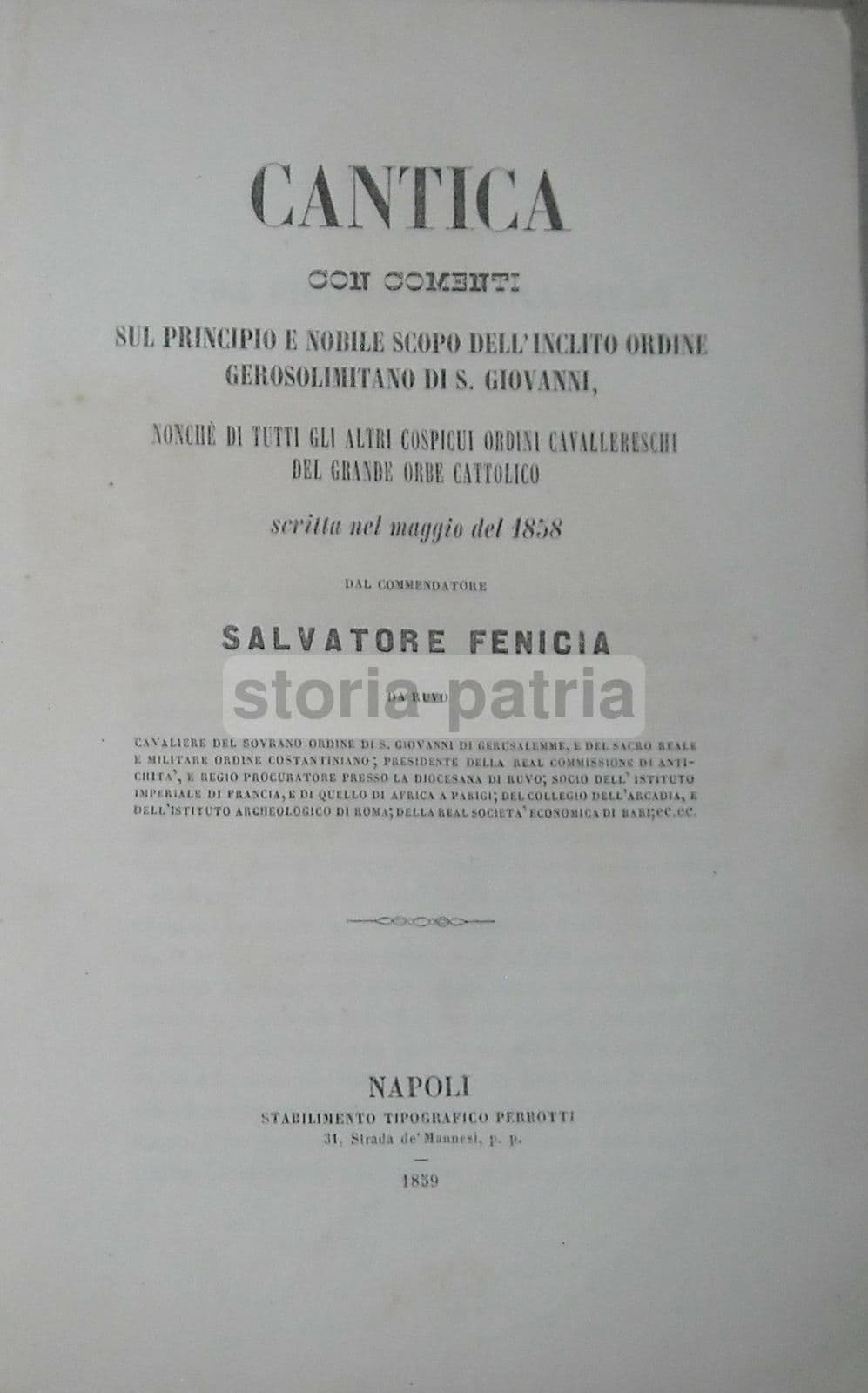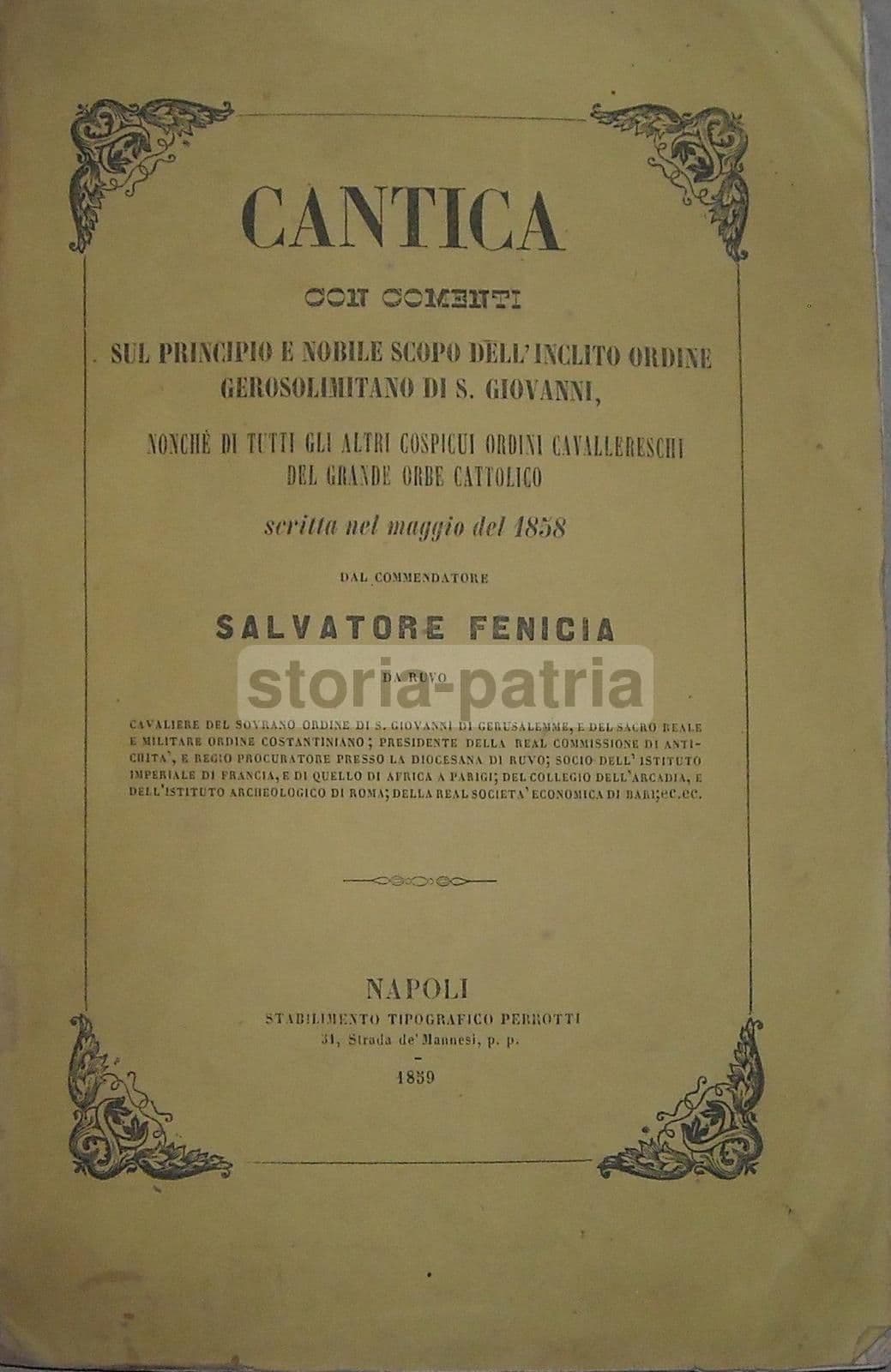 Salvatore Fenicia, Cantica Sull'Ordine Gerosolimitano E Ordini Cavallereschi, 1859