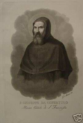 Stampa Antica Di San Giuseppe Da Copertino, Incisione Di G. Marri, Metà XIX Secolo