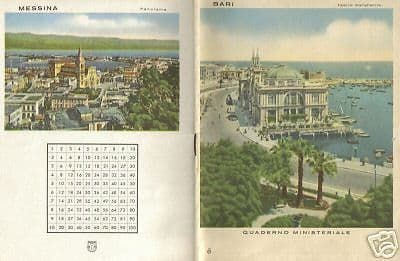 Quaderno Scolastico Antico Con Vedute Di Bari (Teatro Margherita) E Messina