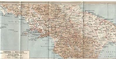 Mappa Antica Della Campania, Basilicata E Puglia Vallardi Per TCI, Anni '20