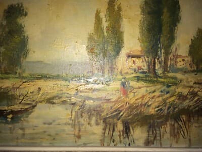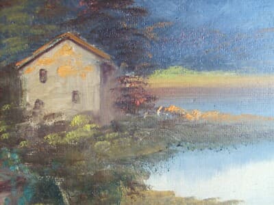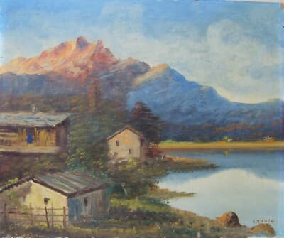 Paesaggio Montano Con Lago, Arnaldo Ronchi, Olio Su Faesite, Anni '30