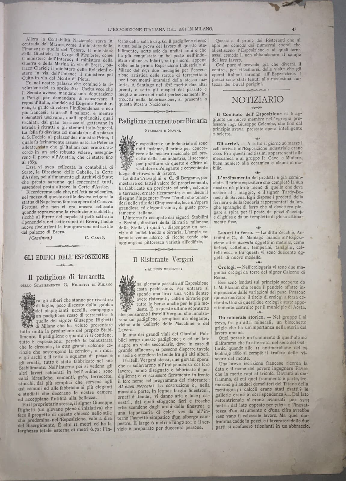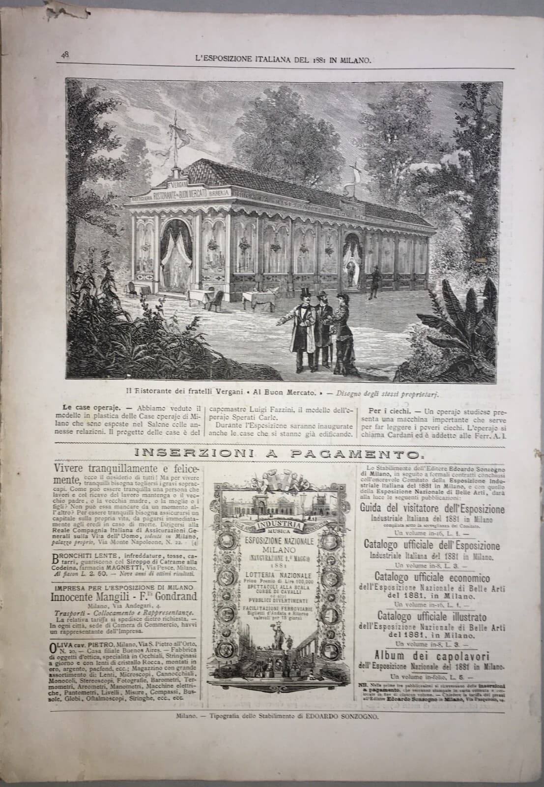 Arte, Architettura, Ristorante Vergani, Al Buon Mercato, Birreria, Milano, 1881