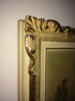 Athos Brioschi, Paesaggio Alpino Con Figure, Olio Su Cartone In Cornice Ebanizzata