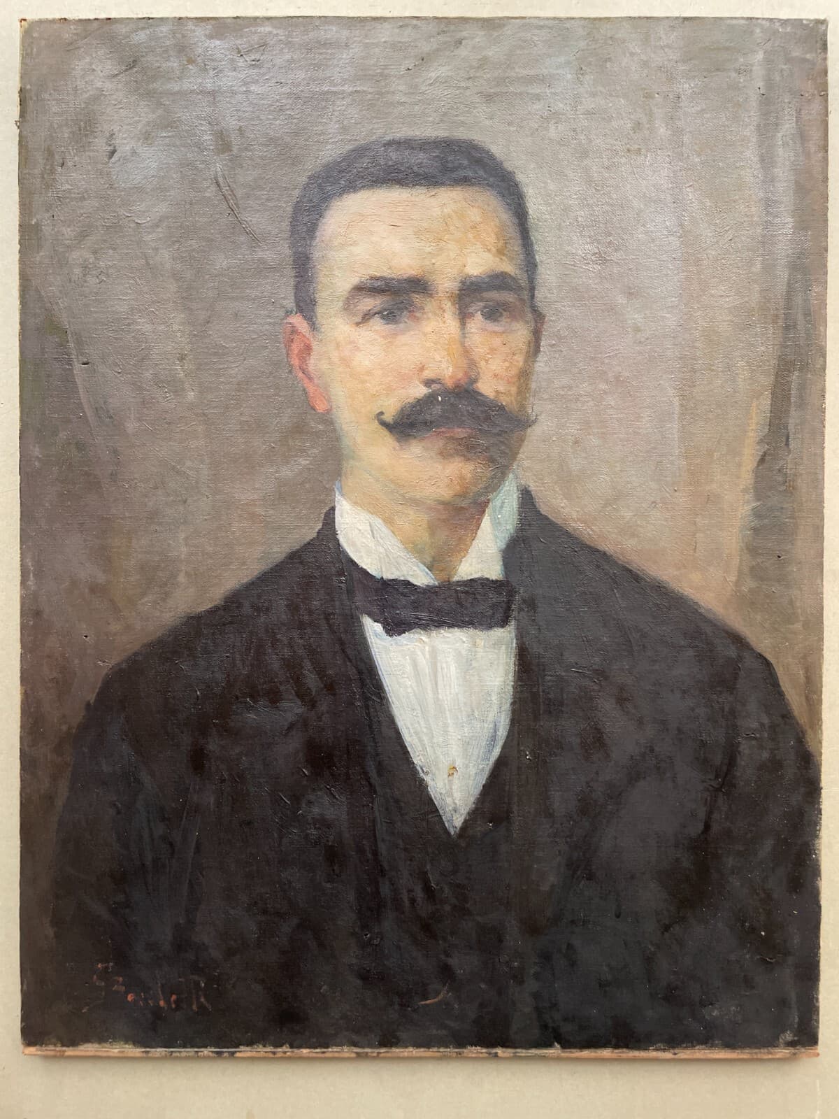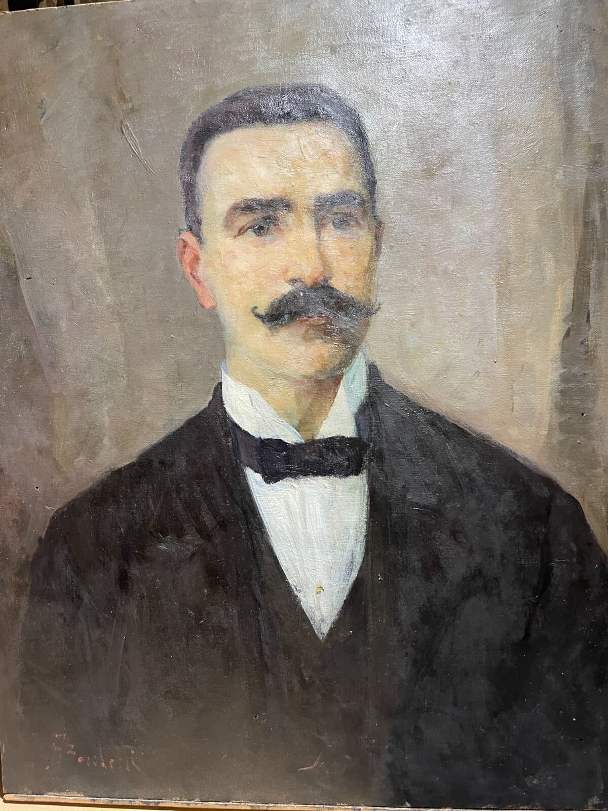 Arte: Pittura, Antico Ritratto Maschile. Uomo Con Baffi, Opera Firmata