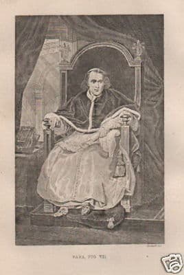 Papato: Ritratto Di Papa Pio VII, Incisione Di Bucinelli, XIX Secolo