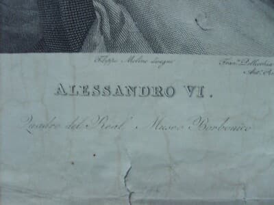 Papato: Papa Alessandro VI, Sebastiano Del Piombo, Incisore Francesco Pellecchia Grande Antico Ritratto