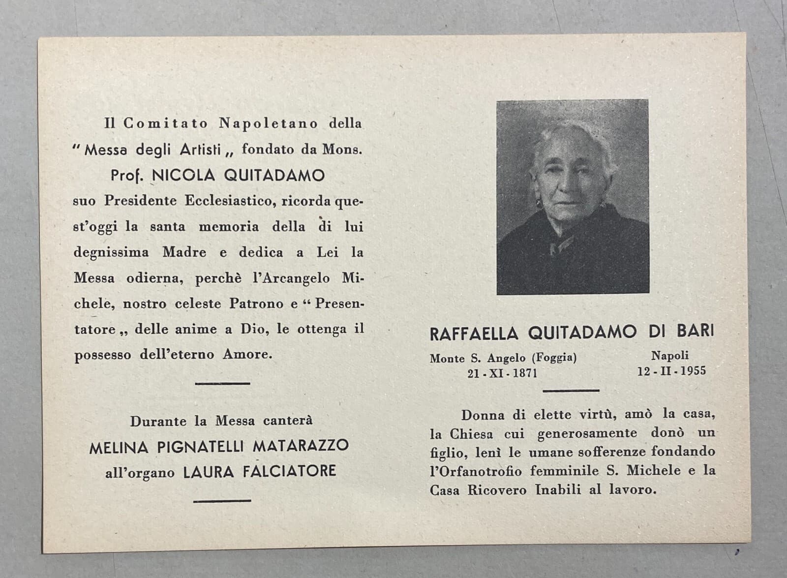 Napoli: Comitato Messa Degli Artisti Quitadamo Monte Sant'Angelo San Michele 1955