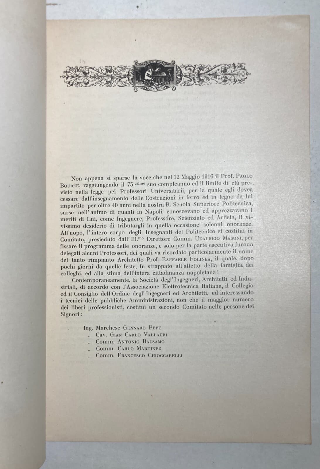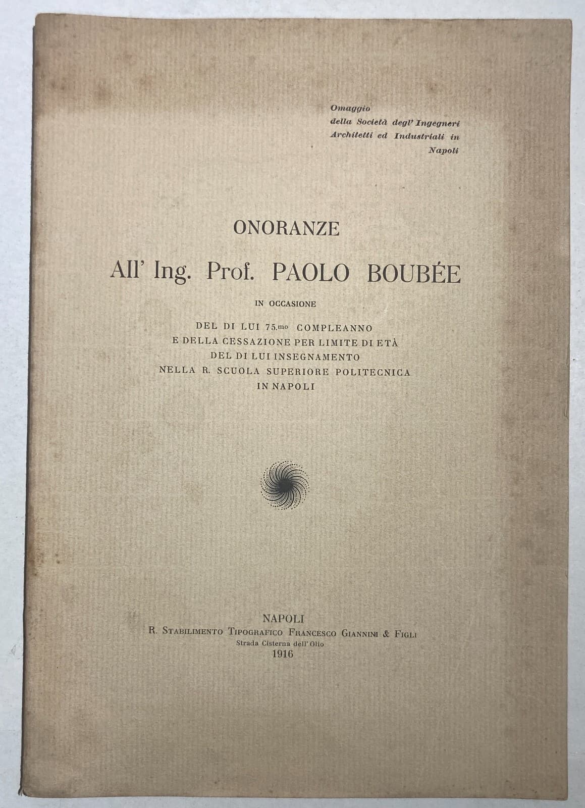Elettricità, Elettrotecnica, Napoli: Onoranze Al Prof. Paolo Boubée Antica Edizione 1916