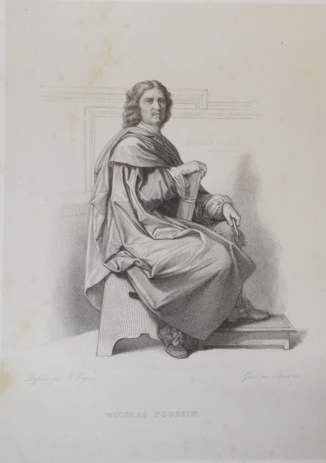 Antico Ritratto Di Nicolas Poussin. Incisione Di Baudran Da Ingres, XIX Secolo