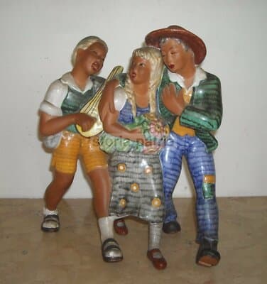 Ceramica Da Collezione: Gruppo Scultoreo Popolare Con Musicisti E Cantanti, Anni '20