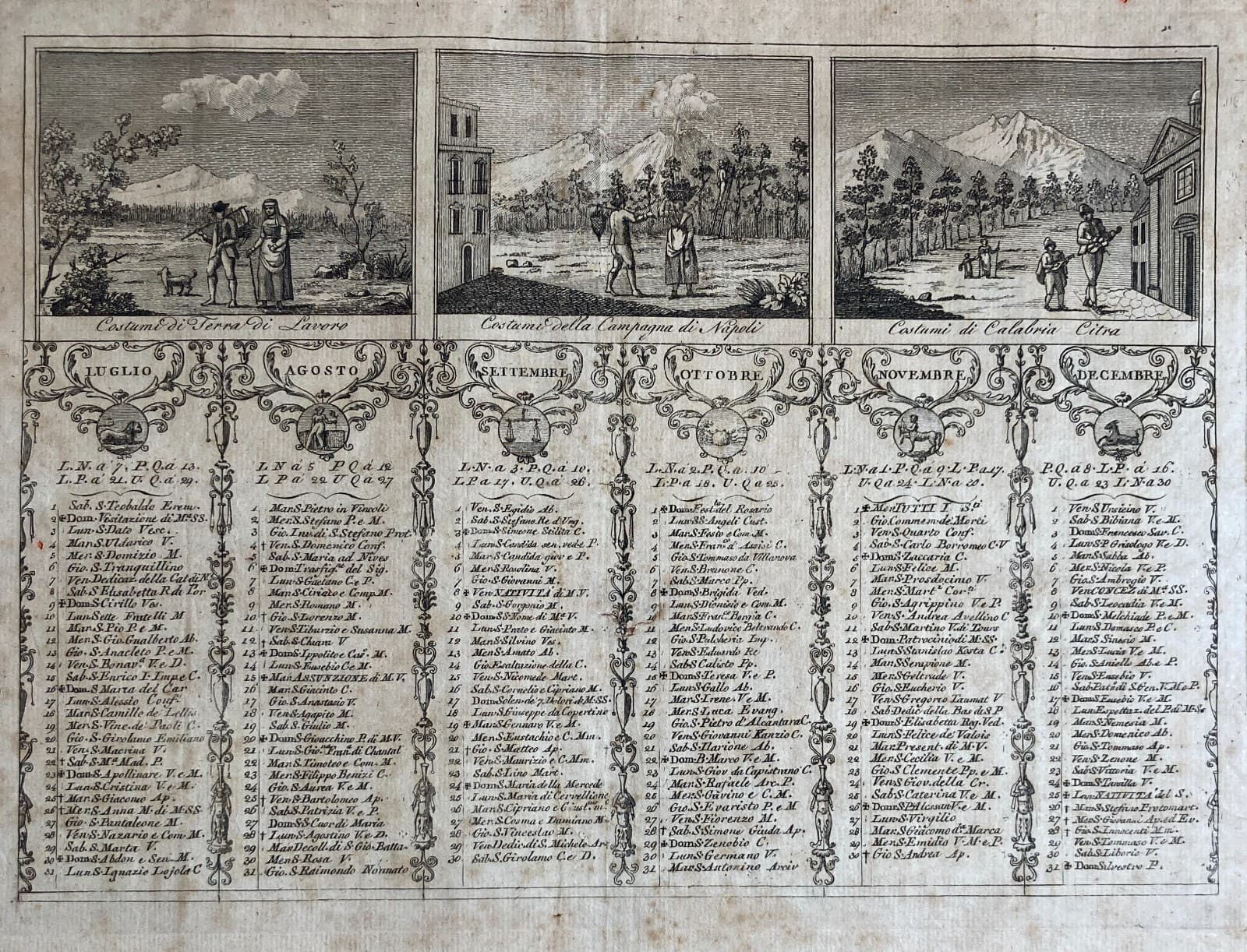 Regno Di Napoli: Caserta, Napoli, Calabria Vedute Folkloriche E Calendario