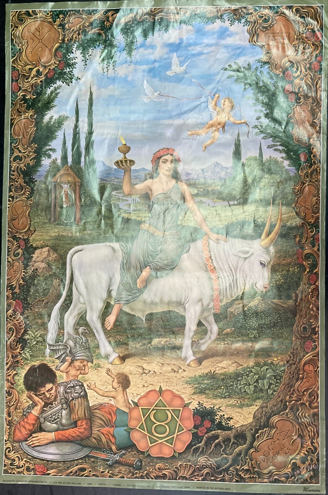 Segno Zodiacale Del Toro. Illustrazione Astrologica Ispirata A Johfra, Grande Stampa