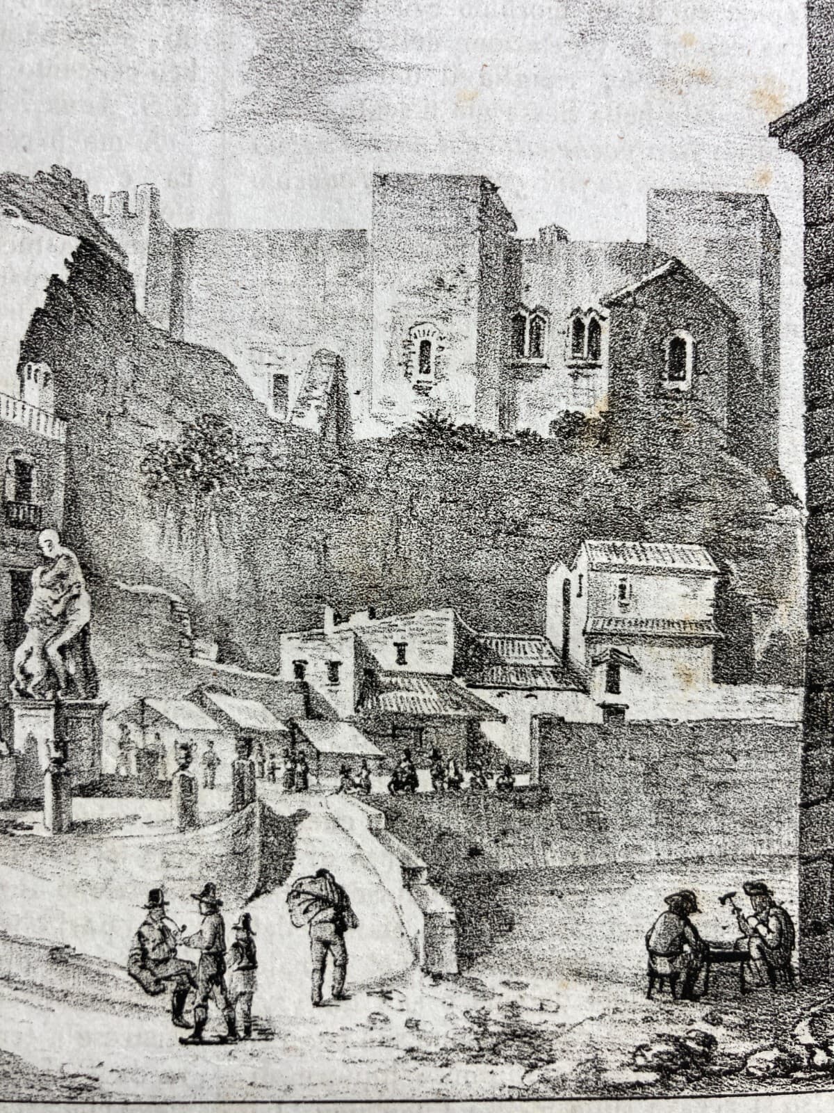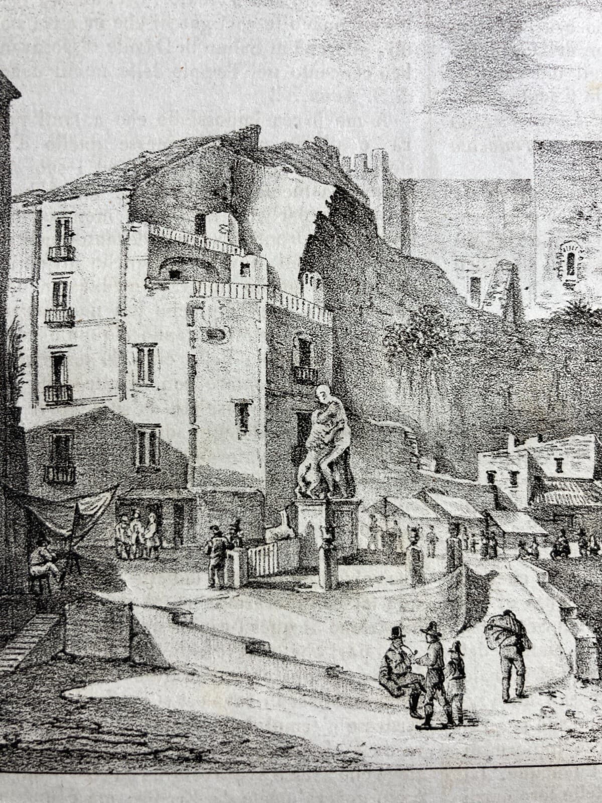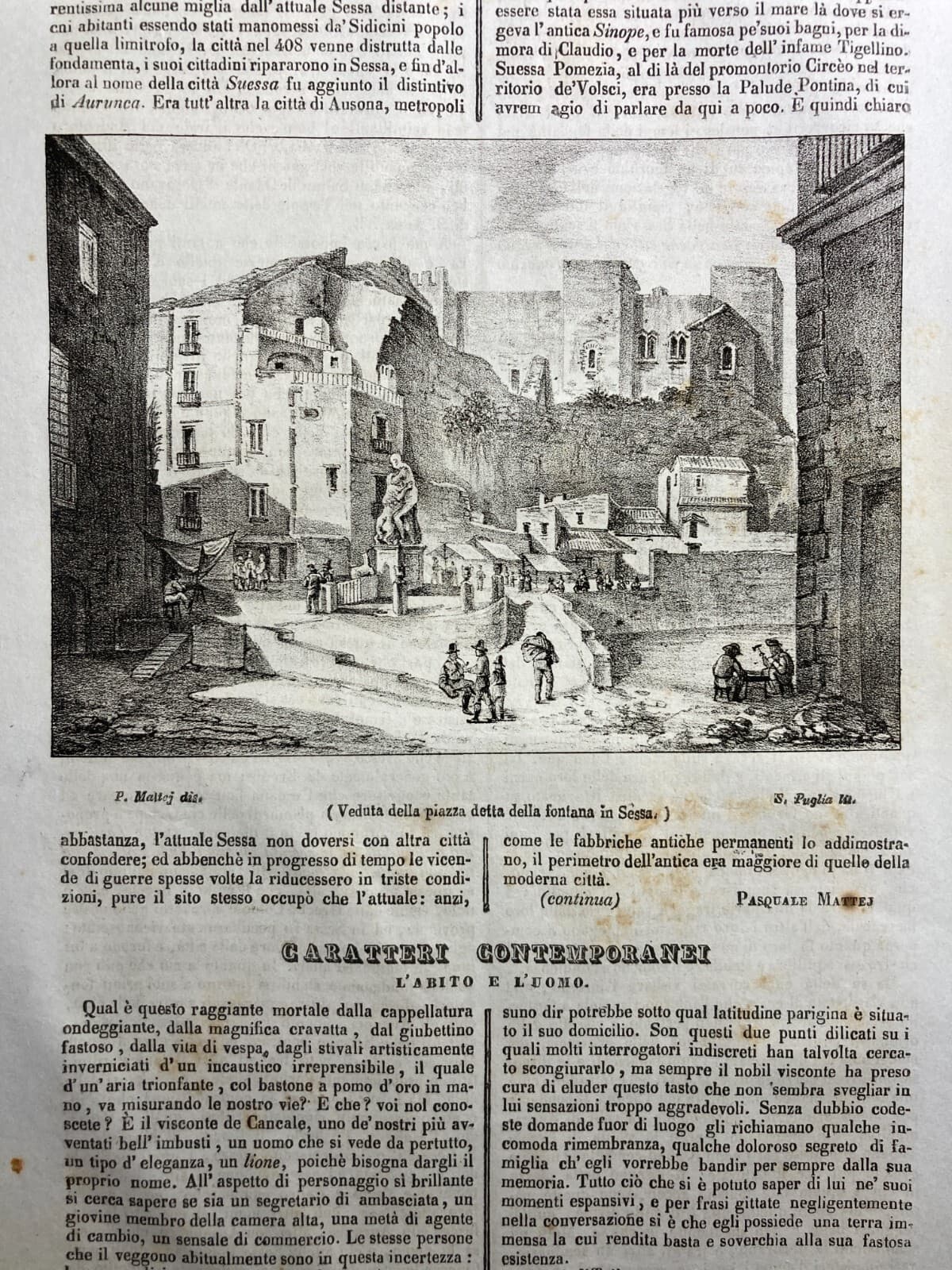 Sessa Aurunca: Antica Veduta Litografica Di Piazza Della Fontana