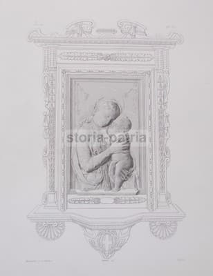 Arte, Iconografia Devozionale, Madonna Con Bambino, Donatello, Antica Incisione, XIX Secolo