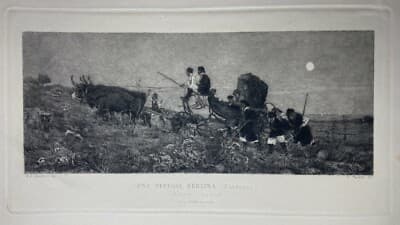 Incisione d'Arte Antica: Sardegna, Folklore Sardo. Artista Quadrone, Incisore Turletti