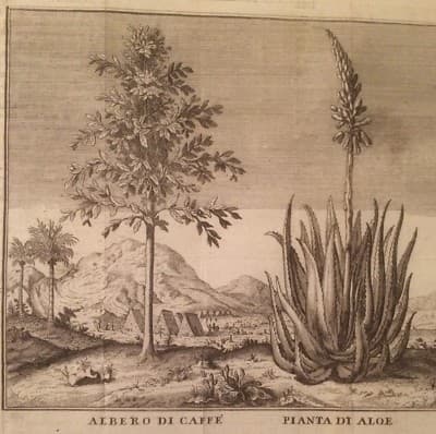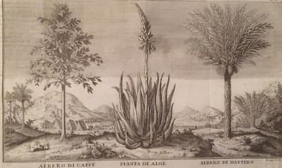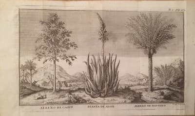 Botanica: Piante Di Caffè, Aloe E Dattero. Antica Stampa Dell'Incisore Filosi