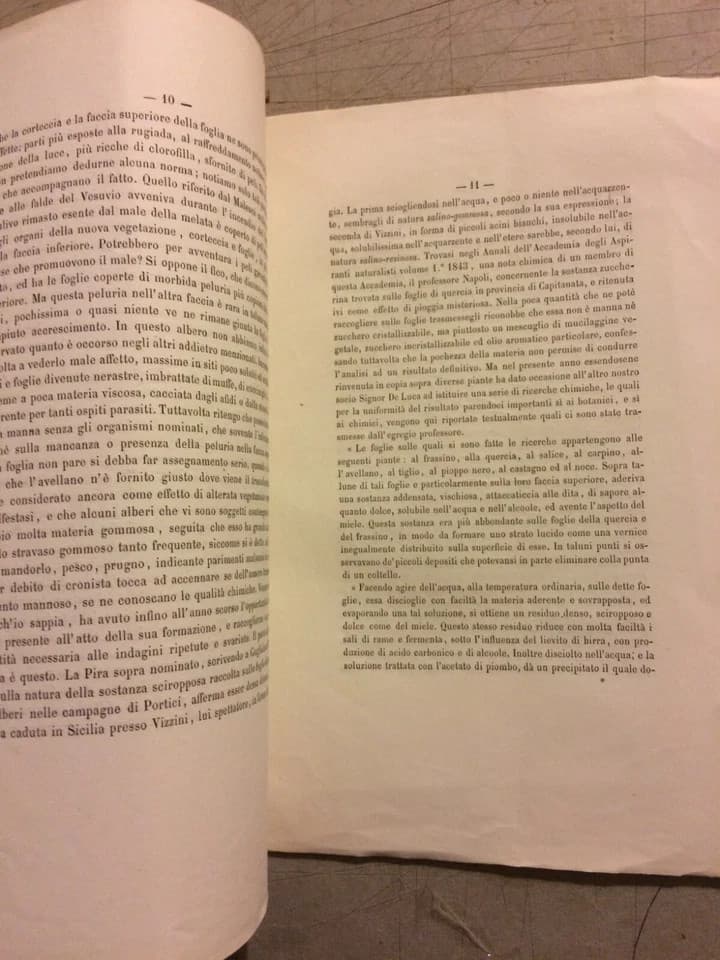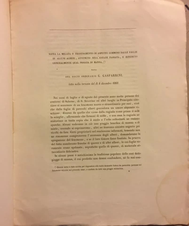 Scienze Naturali: Botanica, Melata, Pioggia Di Manna. Gasparrini, Cilento, Salerno (1863)