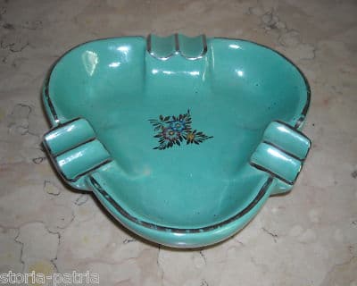 Posacenere d'Epoca In Ceramica Con Decori Floreali E Argentature