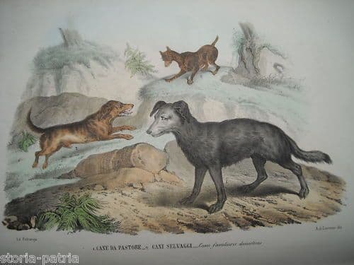 Litografia Napoletana, Cane Pastore E Cani Selvaggi, Petraroja Di Lorenzo, XIX Secolo