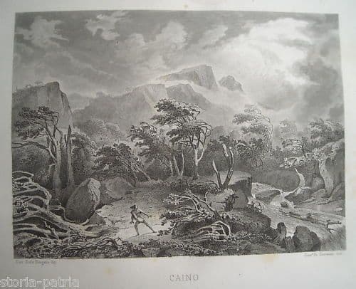 Incisione Antica: Caino (di Fergola E Di Giovanni), Napoli, Metà Ottocento