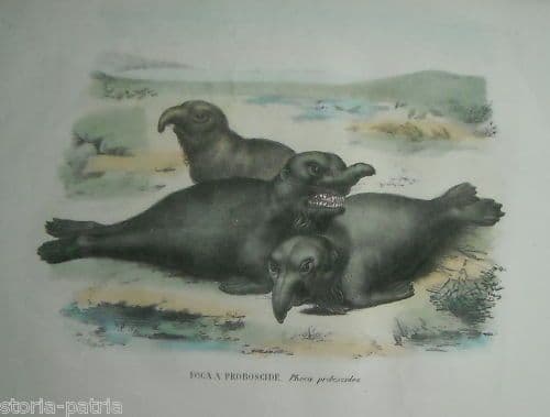 Antica Litografia Napoletana: Foca A Proboscide, Rispoli E Petraroja
